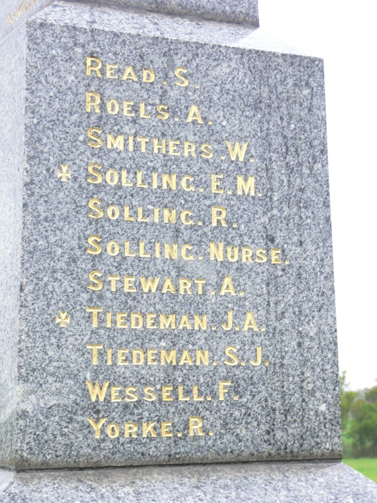 Detail of Wallalong Memorial showing members of the Solling family that served in WW1. Sister Solling’s brother Eric “Dick” Solling was killed at Gallipoli.