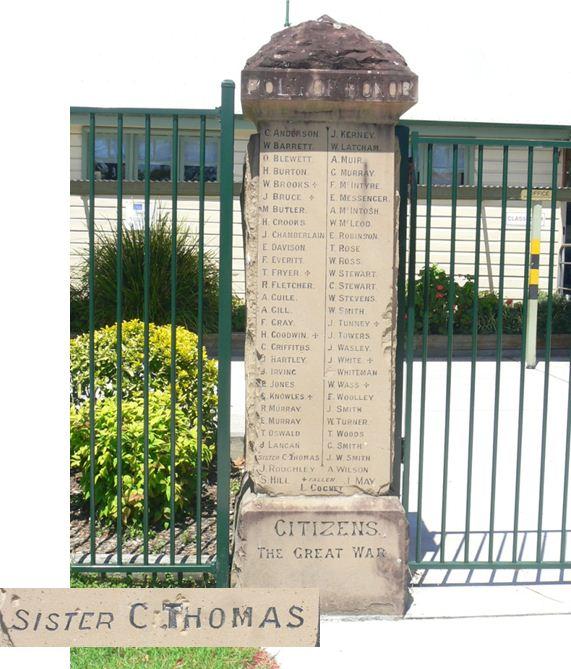 Connection to the Hunter Valley – Staff Nurse Catherine Thomas was born in Minmi and trained at Maitland Hospital. She is named on Kurri Kurri Congregational Church Memorial and Pelaw Main Public School Memorial Gates.